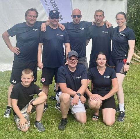 Nach einem zwar gewonnenen aber zeitlich nicht so guten ersten Rennen gegen das Boot der Mitarbeiter der Lebenshilfe Marburg konnten wir uns im zweiten Rennen deutlich steigern. Hier bezwangen wir die Mannschaft der Firma Fritz Winter mit dem passenden Namen "B(r)and1".