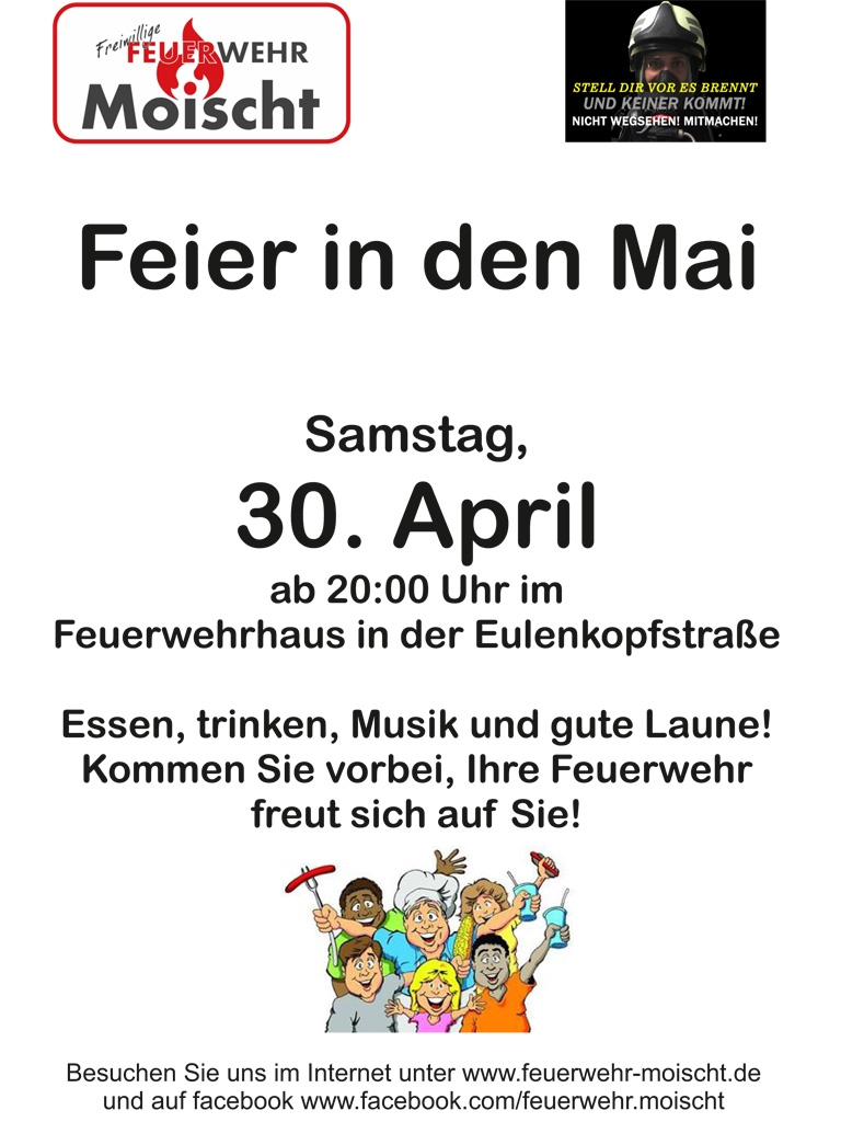 Am 30. April laden wir Sie recht herzlich zu Essen, Trinken und guter Laune zum geschmückten Maibaum vor der Mehrzweckhalle und ins Feuerwehrhaus in die Eulenkopfstraße ein.