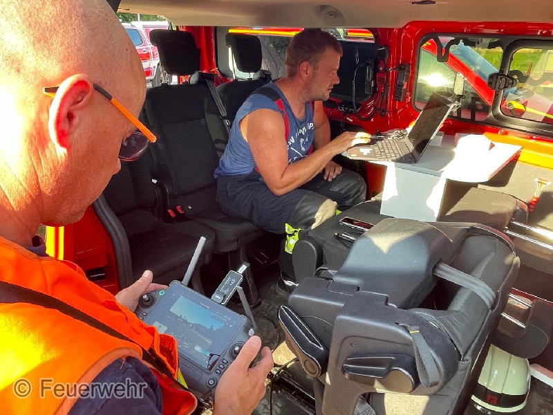 Die Feuerwehr Moischt war mit ihrem Einsatzleitwagen für den Einsatzabschnitt Luftaufklärung zusammen mit der Drohnengruppe aus Michelbach zuständig.