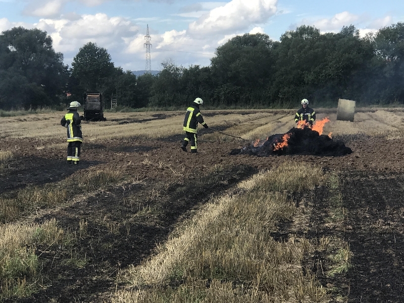 Die Ballenpresse sowie die in Flammen stehende Fläche wurdne mit 3 C-Rohren abgelöscht. Um eine Brandausbreitung auf die benachbarten Felder, sowie eines angrenzenden Wäldchens zu verhindern, wurde die Fläche aufgegrubbert.